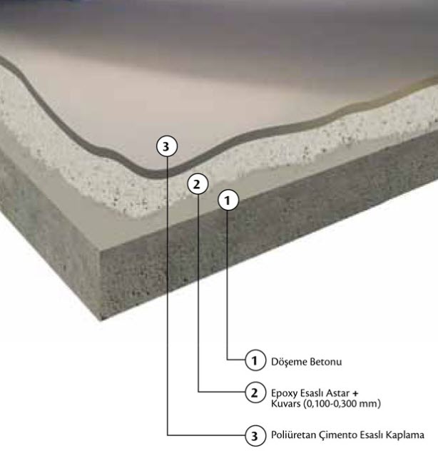 Kimyasal olarak kapalı gözenek bir malzeme olması ve yekpare uygulanabilmesi sayesinde yapılan kaplama aynı zamanda bir su izolasyonu sağlamaktadır.